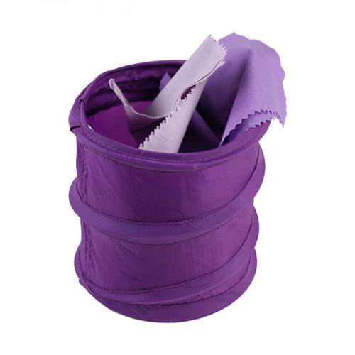 The perfect collector for the trimmings that invariably occur with every sewing and quilting project. Light weight and collapsible, this cute accessory packs easily for your classes and retreats. Opened Size: 6" diameter, 9" high Flat Size: 6" diameter, 1/2 high.