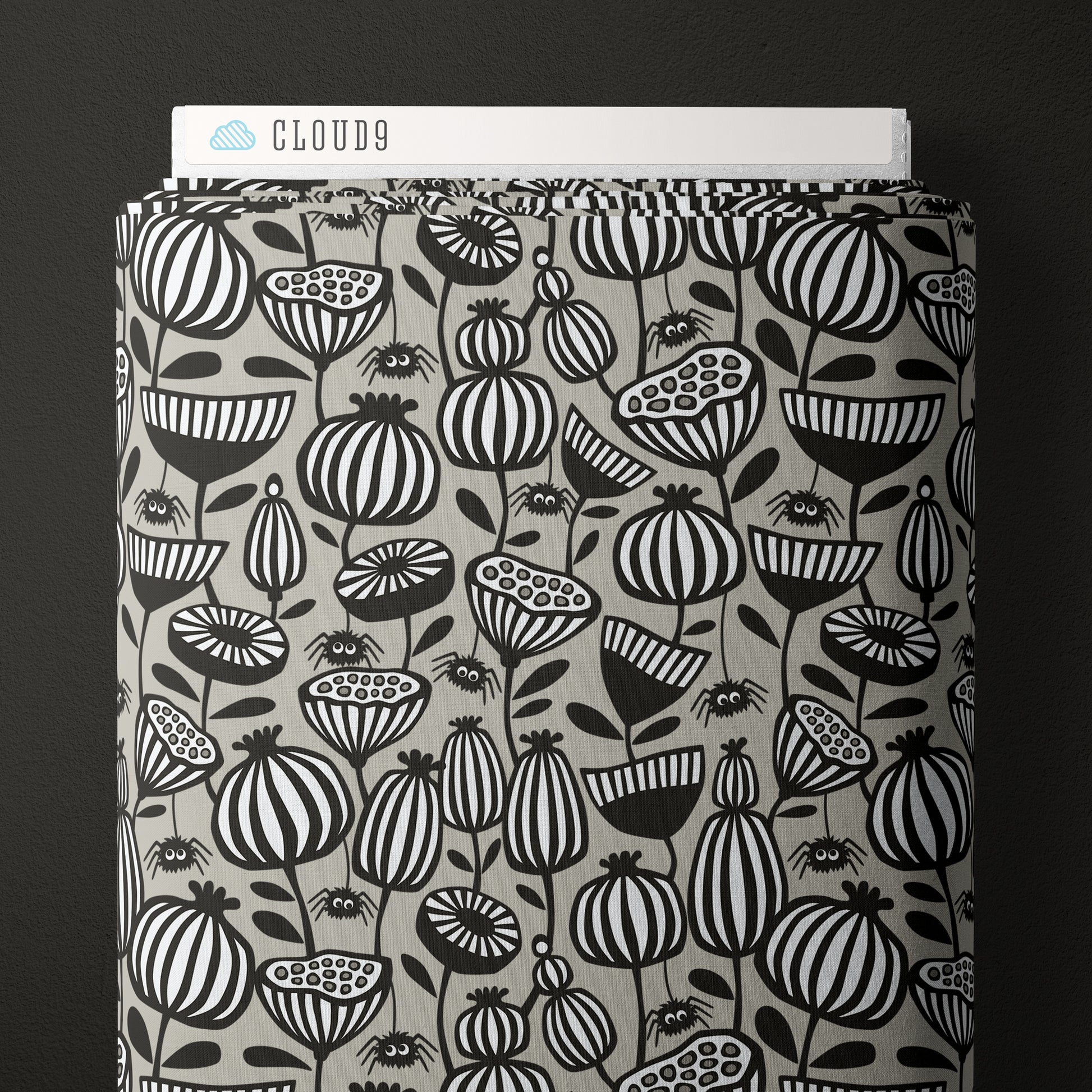 GRAY Spiders Garden- Gothic Whimsy Collection by Anequ Studio for Cloud9 Organic Cotton