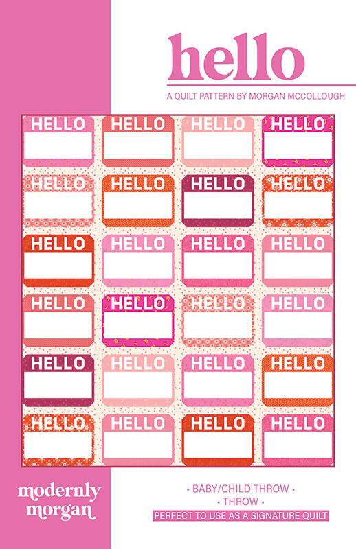 Project size: Baby/Child Throw = 46 1/2" x 46 1/2", Throw = 62 1/2" x 70 1/2 The Hello quilt pattern is a traditionally pieced quilt that has a modern, pop art inspired look! Hello also doubles as a signature quilt that guests can fill up with congrats and well wishes at baby showers, weddings or any family/work related event.