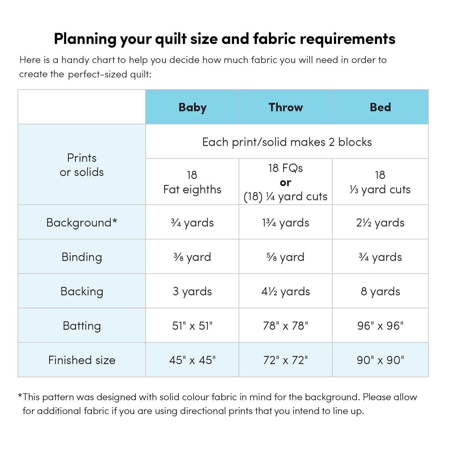 The pattern is both fat quarter and scrap-friendly meaning that you can combine cohesive fabrics, or go for a random look that is truly your own. The pattern includes photos, layout instructions, and a colouring page so you can plan your fabric layout.