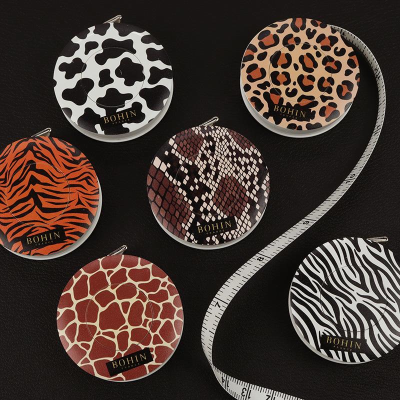 Discover our chic new animal collection of BOHIN tape measures: Leopard, Snake, Zebra, Tiger, Giraffe and Cow. An iconic design to delight collectors. 60" retractable tape measure with inches on one side and centimeters on the other.