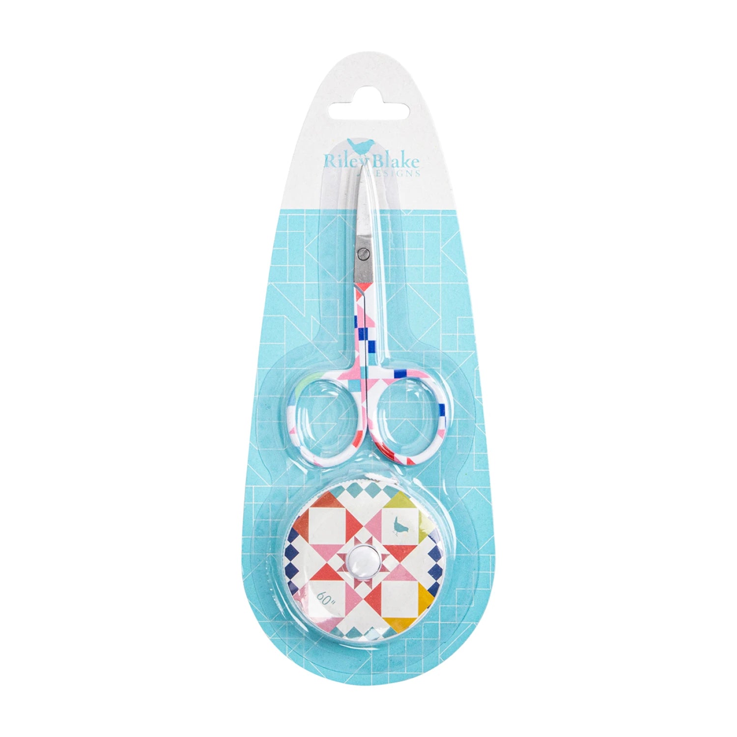The Riley Blake Designs Scissor and Tape Measure Duo includes a embroidery scissors and matching tape measure with a cute, patchwork quilt design. The scissors are 3.25in and the tape measures to 60 inches.
